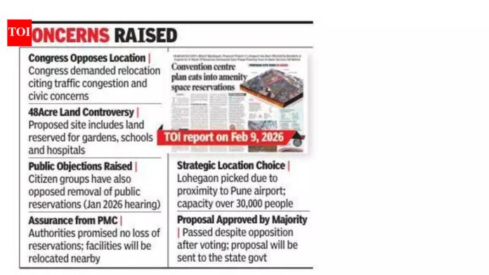 पुणे: पुणे महानगरपालिकेच्या (पीएमसी) सर्वसाधारण सभेत सोमवारी लोहेगाव येथील भारत मंडपम या प्रस्तावित कन्व्हेन्शन सेंटरला पाठिंबा देण्यासाठी भाजप आणि राष्ट्रवादी काँग्रेस एकत्र आले.काँग्रेसने या प्रस्तावाला विरोध केला आणि केंद्राची जागा बदलण्याची मागणी केली. पक्षाने रहदारीच्या समस्येचा हवाला देत लोहेगावमधील विशिष्ट भागाचा विचार करू नये, असे सांगितले. ४८ एकर जागेवर काही भूखंड उद्यान, शाळा, रुग्णालय व इतर सुविधांसाठी आरक्षित असल्याचेही सदस्यांनी निदर्शनास आणून दिले.सार्वजनिक आरक्षणे काढून केंद्रासाठी जागा देण्यास नागरिकांच्या गटांनी यापूर्वीच विरोध केला आहे. जानेवारी 2026 मध्ये झालेल्या सुनावणीदरम्यान आक्षेप घेण्यात आले होते.दरम्यान, पीएमसीमधील सभागृह नेते गणेश बिडकर यांनी भारत मंडपम प्रकल्प राबविताना कोणतेही सार्वजनिक आरक्षण हटवले जाणार नाही, असे आश्वासन सर्वसाधारण सभेला दिले. “आम्ही हे सुनिश्चित करू की आरक्षणे पूर्णत: अंमलात आणली जातील. संमेलन केंद्रात पार्किंग आणि बगीचे दिले जातील, तर परिसरात शाळा आणि हॉस्पिटल विकसित केले जातील. आम्ही प्रशासनाला आरक्षणे अंमलात आणण्यासाठी योजना तयार करण्यास सांगू,” ते म्हणाले. या प्रस्तावाला सोमवारी मंजुरी देण्यात आली असून आता पुढील विचारासाठी तो राज्य सरकारकडे पाठवण्यात येणार आहे.राज्य सरकारने नवी दिल्लीतील भारत मंडपमच्या धर्तीवर कन्व्हेन्शन सेंटरचा प्रकल्प विकसित करण्याचा प्रस्ताव दिला आहे. लोहेगाव विमानतळापासून जवळ असल्याने त्याची निवड झाल्याचे बिडकर यांनी सांगितले. केंद्र 30,000 हून अधिक लोकांची उपस्थिती असलेले कार्यक्रम आयोजित करण्यास सक्षम असेल, परंतु डिझाइनिंग आणि इतर तपशील राज्य सरकारद्वारे अंतिम केले जातील.अरविंद शिंदे आणि रामचंद्र कदम यांच्यासह काँग्रेस पक्षाच्या सदस्यांनी सांगितले की, हा प्रस्ताव रद्द करण्यात यावा कारण नागरिकांसाठी असलेली आरक्षणे काढून त्याची अंमलबजावणी केली जात आहे. लोहेगाव हा झपाट्याने विकसित होत असलेला परिसर असून नागरिकांना आधीच वाहतूक कोंडीसह अनेक समस्यांना तोंड द्यावे लागत आहे. पक्षाचा भारत मंडपम प्रकल्पाला विरोध नसल्याचे ते म्हणाले, आक्षेप फक्त जागेबाबत आहेत. नागरिकांनी आणि विविध नागरी विभागांनी आरक्षणे हटवण्यास आणि ठराविक जागेला विरोध केल्याचेही शिंदे आणि कदम यांनी अधोरेखित केले.या मुद्द्यावर मतदान घेण्यात आले आणि काँग्रेसच्या आक्षेपानंतरही हा प्रस्ताव बहुमताने मंजूर करण्यात आला आणि भाजप आणि राष्ट्रवादीने पाठिंबा दिला.विरोधी पक्षनेते आणि राष्ट्रवादीचे नेते नीलेश निकम म्हणाले की, केंद्रासाठी रद्द केलेली सर्व आरक्षणे जवळपासच्या भाग